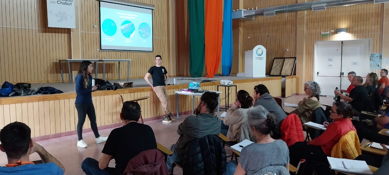 Para seguir profundizando sobre la temática, mediante la materia de Práctica Profesional, se coordinó la visita de investigadores del Instituto de Conservación de Ballenas quienes compartieron sus conocimientos sobre la ballena franca austral.