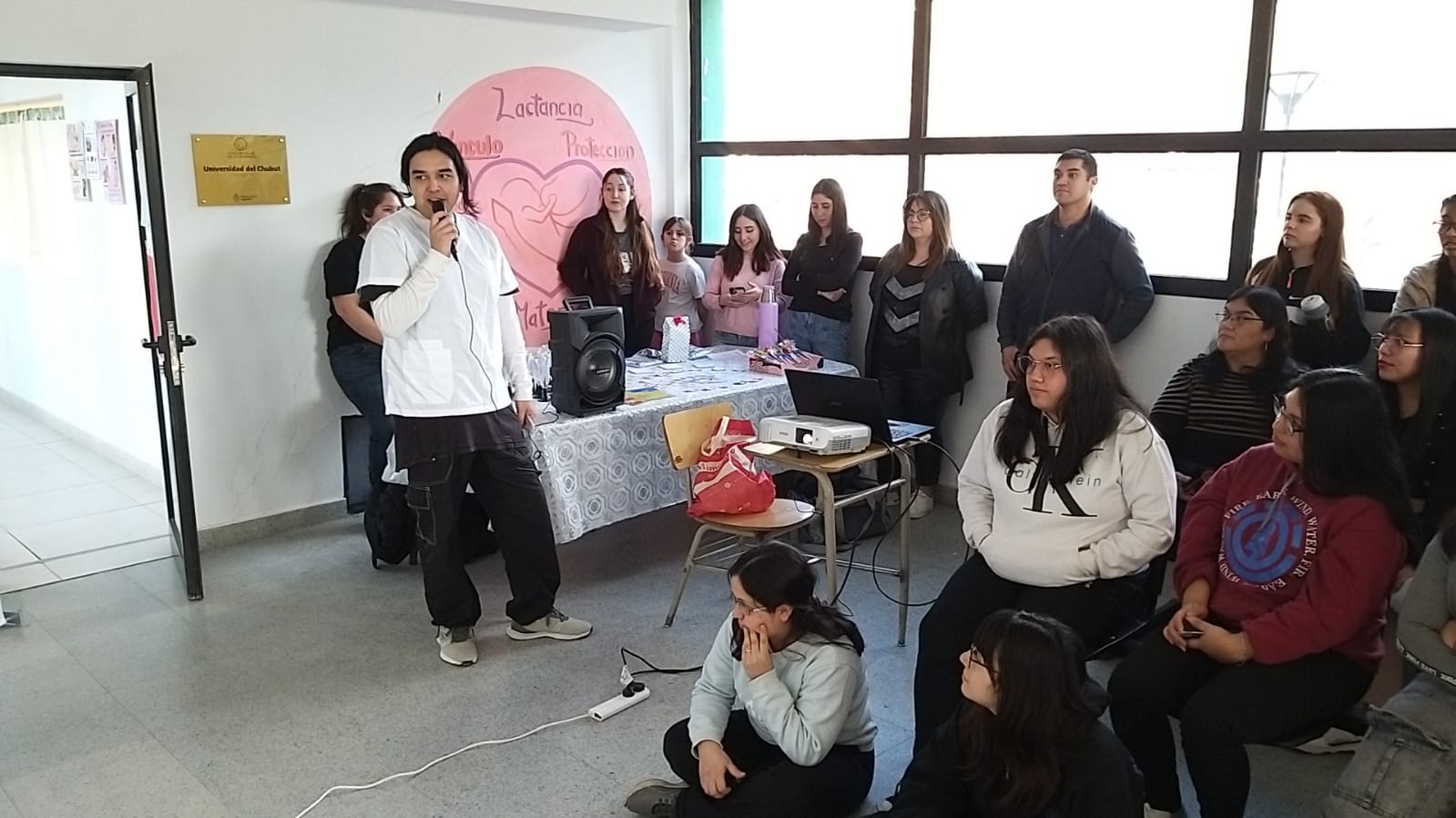 La jornada también incluyó una dinámica especial: la búsqueda del tesoro. Esta actividad lúdica tenía el objetivo de identificar a los estudiantes lactantes y premiar tanto a ellos como a los recién llegados. A través de este juego, los estudiantes pudieron conocer mejor el Espacio Amigo de la Lactancia, creado hace un año para apoyar a los estudiantes que son padres.