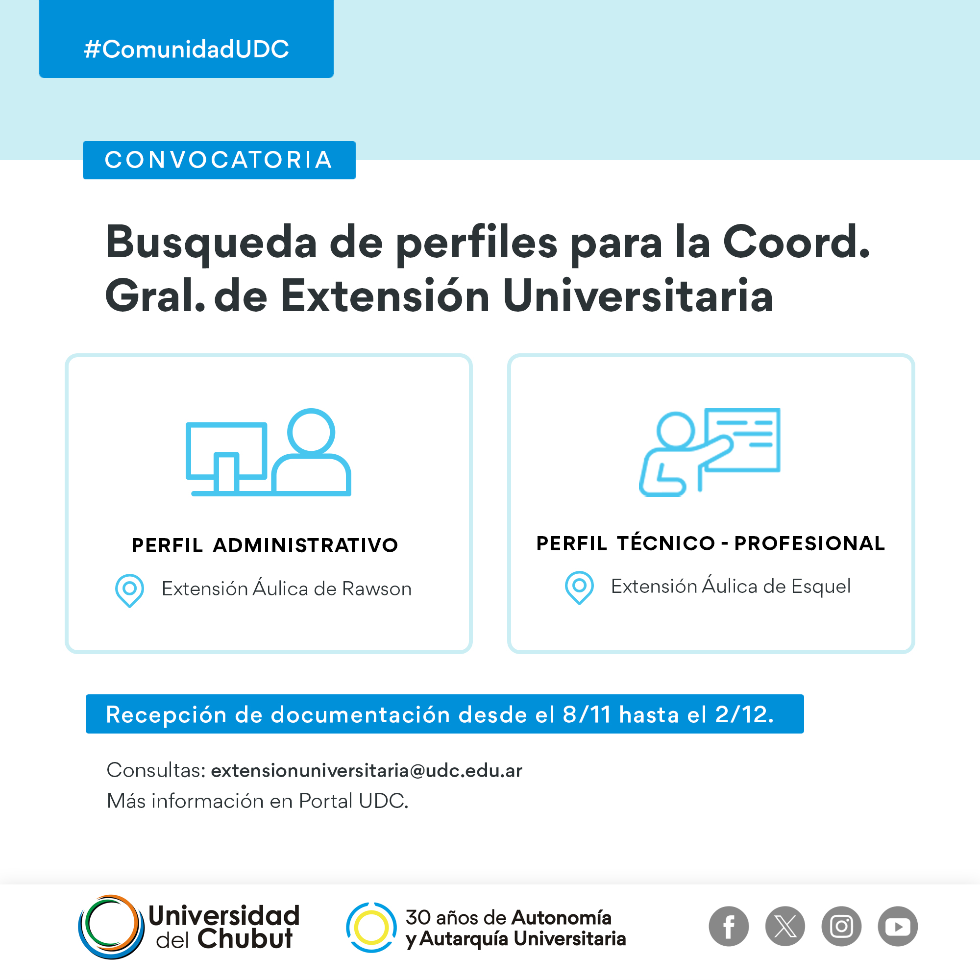 Buscamos perfiles administrativos para Extensión Universitaria