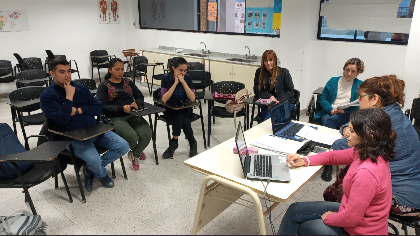 Dicha actividad, que está enmarcada en el Programa Salud Pública y Universidades Saludables, se efectuó a través de aula híbrida en cinco sedes de manera simultánea con disertantes ubicados en Puerto Madryn: Lic. Nancy Copa, MG. Claudia Espinoza, Lic. Jorge Reuque (Madryn) y por Esquel: la estudiante de Enfermería Andrea Dominguez, Lic. Leticia Baez a coordinadora de la carrera de enfermería y el Lic. Matías Iñiguez de la misma cátedra, además del acompañamiento de la Lic. Julieta Gómez E.U Esquel.