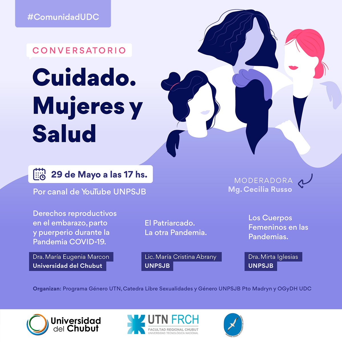 El Conversatorio “Cuidado. Mujeres y Salud” estará organizado en tres ejes temático. El primero de ellos será llevado adelante por la doctora María Eugenia Marcon, quien disertará sobre “Derechos reproductivos en el embarazo, parto y puerperio durante la pandemia COVID-19”. El segundo eje estará a cargo de la licenciada María Cristina Abrany y hará hincapié en “El Patriarcado. La otra Pandemia”. En tanto, la doctora Mirta Iglesias desarrollará el tercer eje, denominado “Los cuerpos femeninos en las Pandemias”. El Conversatorio será moderado por la doctora Cecilia Russo y estará abierto a toda la comunidad.