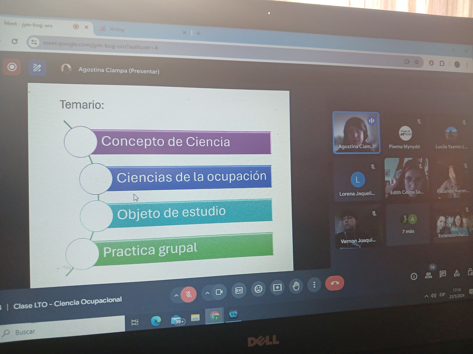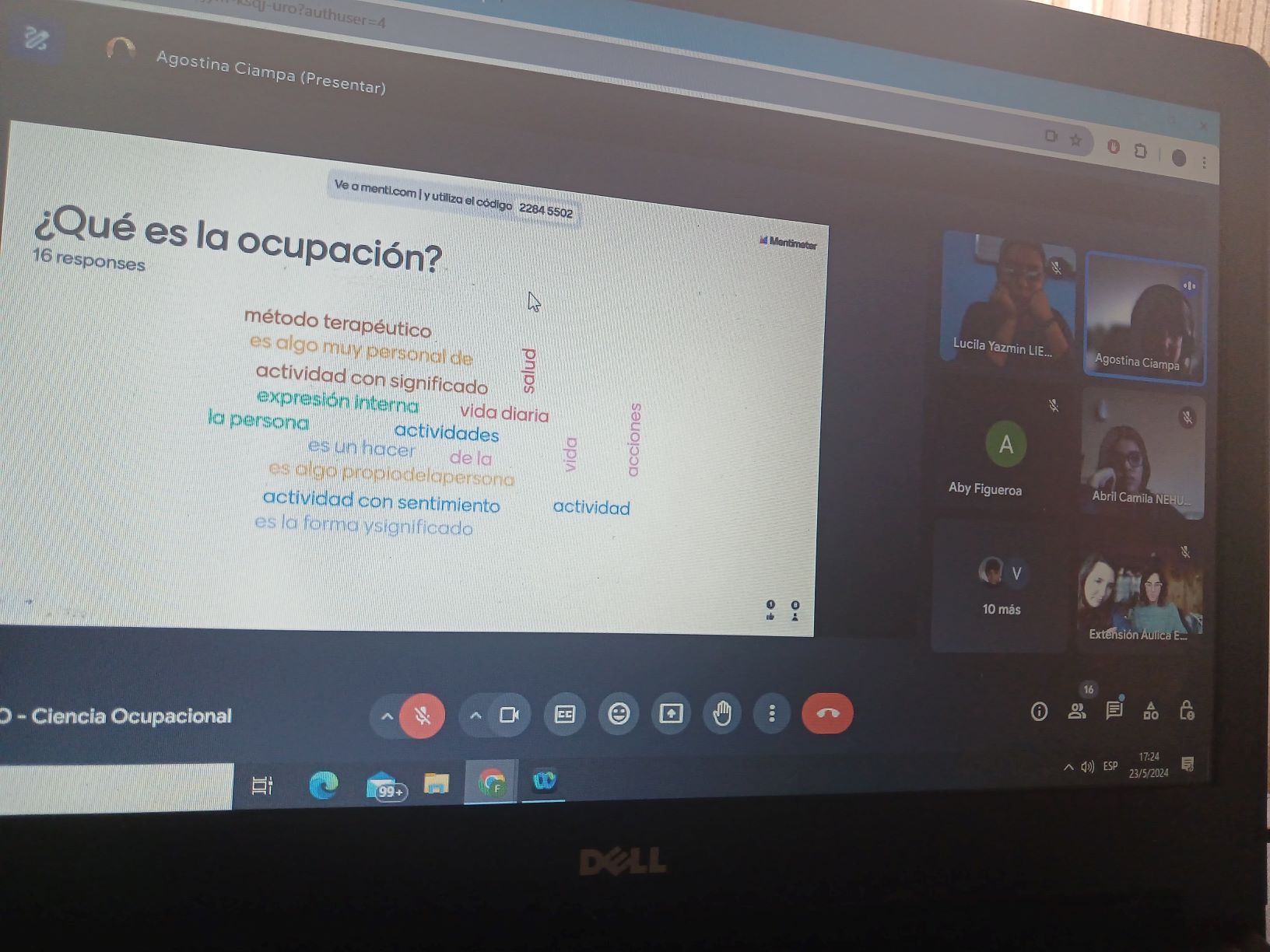 Mediante esta experiencia con modalidad de aula invertida, organizada por docentes de la cátedra, Lics. Florencia Itovich y Ana Caruso, se tuvo el honor de contar con el acompañamiento de tres referentes: Fernanda Suppicich (Bs.As) acompañó la presentación del modelo OTIPM, Maria Elena Tiscornia (Chubut) del Modelo de la Ocupación Humana y Agostina Ciampa de Ciencia de la Ocupación, facilitando material de lectura, escuchando las presentaciones de les estudiantes y profundizando en el contenido a partir de sus formaciones y recorridos profesionales.