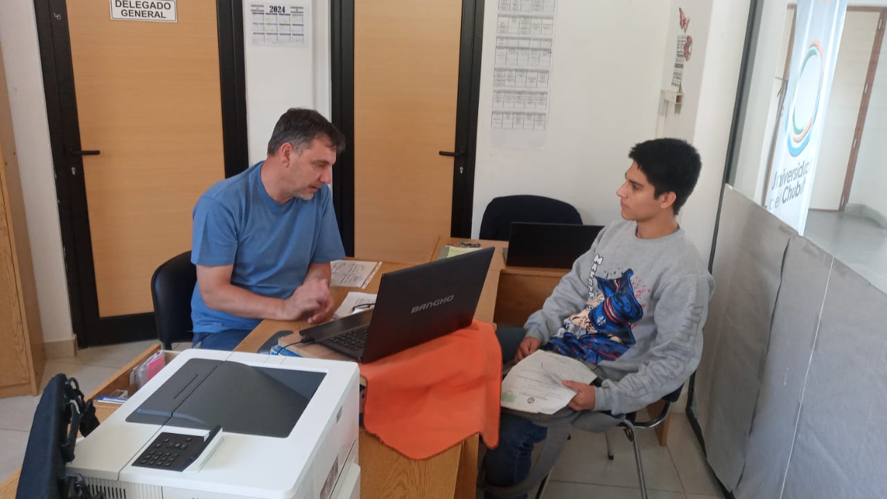Brayton recién llegado de la provincia de La Rioja, entregó toda la documentación necesaria para sumarse a la UDC a nuestro bedel Lucas Glass Eggman en la Extensión Áulica Esquel, para enfrentar el desafío profesional de cursar la Tecnicatura Universitaria en Redes y Telecomunicaciones.