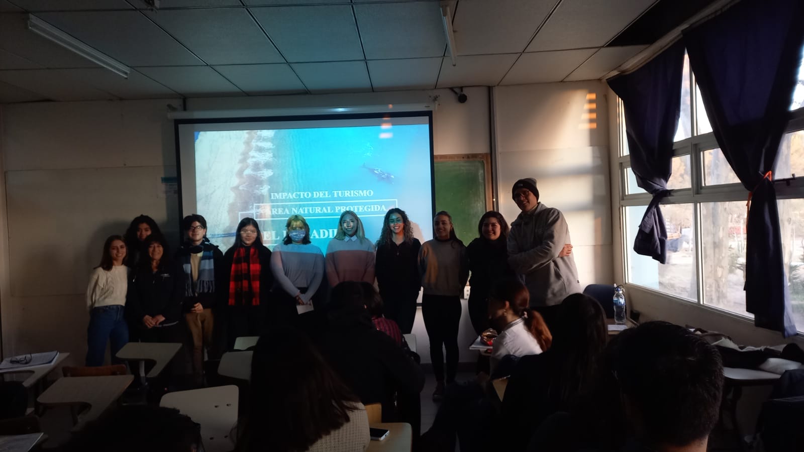 Hola a todos: quería compartir con la comunidad de la UdC, la primera experiencia que la cátedra de ARH ha tenido en esta oportunidad, en forma conjunta con mis alumnos de la Universidad de la Patagonia San Juan Bosco, de la carrera Licenciatura en Turismo, la cátedra de Psicología Social, de la cual soy también docente. Como cierre de ambas cátedras, ambos grupos de alumnos debieron realizar un Proyecto en forma conjunta, bajo la consigna: EL IMPACTO DEL TURISMO EN LAS ZONAS NATURALES PROTEGIDAS. Para ello, ambos grupos mantuvieron encuentros tanto en nuestra sede de Madryn como en la sede de la UnPata, para coordinar el armado y desarrollo de dicho Proyecto. Hoy 16 de junio, fue la presentación. Separados en 3 grupos los alumnos de la UnPata y coordinados por nuestros alumnos de ARH (teniendo en cuenta que los alumnos de Turismo cursan el 2do año mientras que los nuestros ya están en su último año), expusieron tales trabajos. Cada uno refería a áreas distintas y objetivos diferentes también. Estos son: