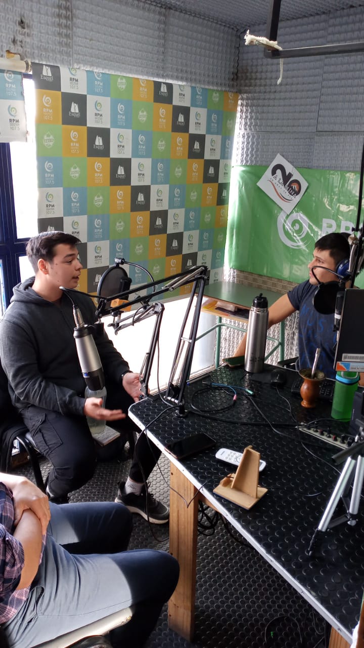En el marco de las actividades de Promoción de la Salud y Prevención de Enfermedades, los estudiantes de 3° año de la Licenciatura en Enfermería junto con el ayudante de la cátedra, Matias Iñiguez, comenzaron con la producción de un ciclo radial propio en la Radio Pública Municipal de Esquel (RPM 107.5).