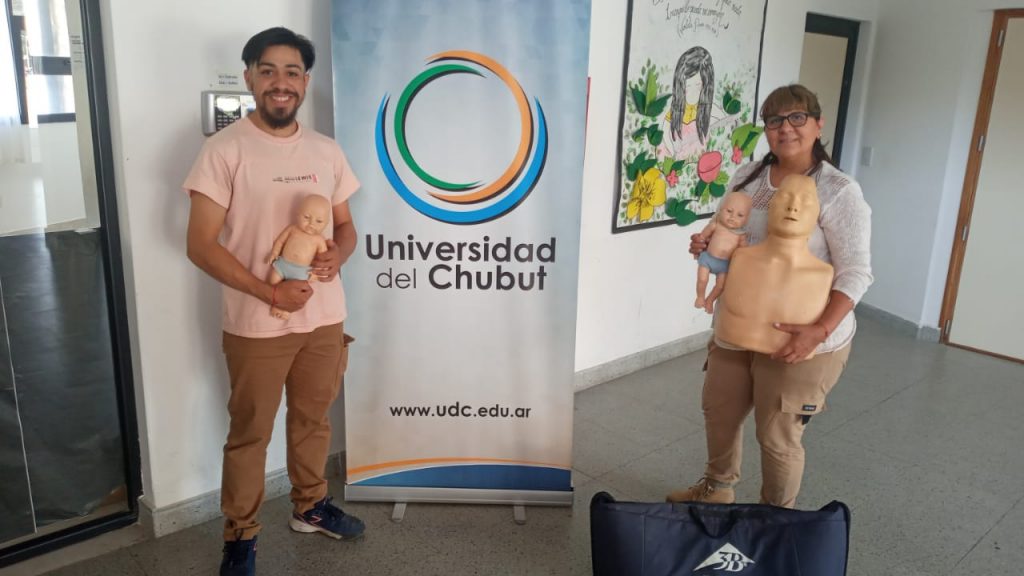 La docente Mirtha Antipan coordinadora general de prácticas, fue receptora de un set compuesto por un maniquí adulto y dos de bebé que serán incorporados al patrimonio de la universidad, al hacer entrega Jesús relató “inicié un emprendimiento en la ciudad de Neuquén, donde a mí me brindaron estos muñecos a una forma de pago muy accesible para poder trabajar y desarrollarme. Por eso en devolución de ese favor a la vida misma, los dejo para que otras personas tengan la oportunidad de aprender, porque esta práctica salva vidas y si sirve para que alguien el día de mañana encuentre una vocación con ello, más que nada ese es el sentido de mi donación”.