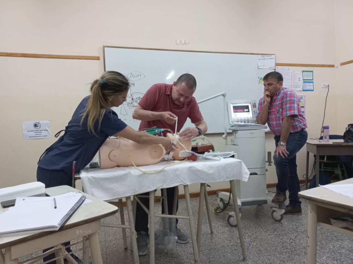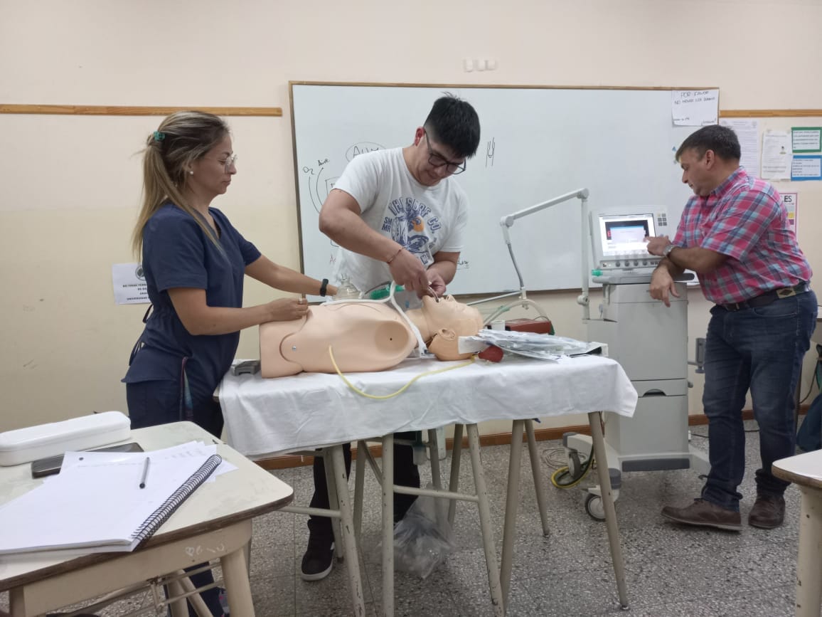 Días atrás, se realizó una clase teórica-práctica de la asignatura Enfermería en Cuidados Críticos, en la que se trabajó sobre “Las implicancias de Enfermería AVM” a cargo de la docente Lic. Noelia Miranda (Especialista en Cuidados Críticos) junto con la participación de Lic. Oscar Aspittia, Kinesiólogo del Hospital Zonal de Trelew.