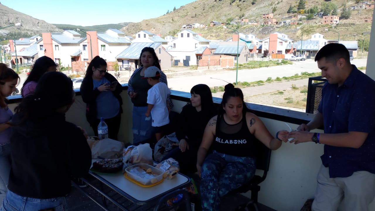 En el marco de la culminación de cursada de la asignatura Ética y Deontología II los estudiantes de Enfermería de Esquel aprovecharon la coincidencia de una tarde entre primaveral y veraniega para salir a la terraza de la extensión áulica y disfrutar de sus maravillosas panorámicas.