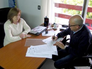 Días atrás la rectora de la Universidad del Chubut (UDC), doctora Graciela Di Perna, y Raúl Molinari, director de la Escuela Secundaria EPJA N° 2702 EMAL, llevaron adelante la firma de un convenio específico para el desarrollo de instancias profesionalizantes para los estudiantes que se encuentran finalizando sus estudios secundarios.