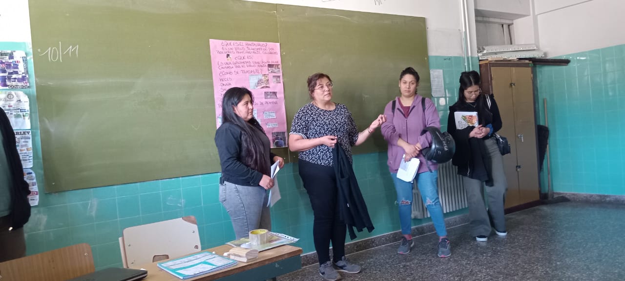 Días atrás estudiantes de primer año de la extensión áulica Esquel, en el marco de una intervención de la asignatura Enfermería Básica I de la temática “Entorno Saludable” realizaron una presentación para alumnos de 3° año de nivel secundario de la escuela 767.