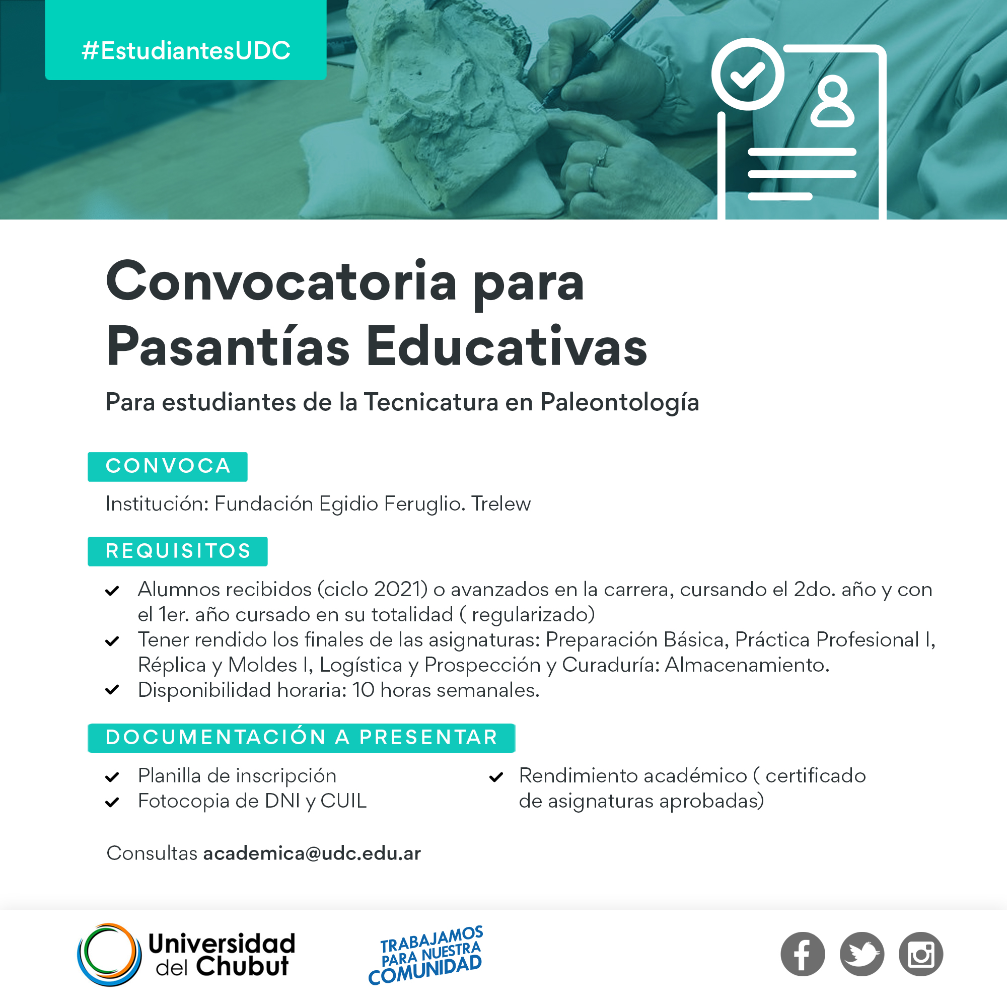 Disponibilidad horaria: 10 horas semanales.