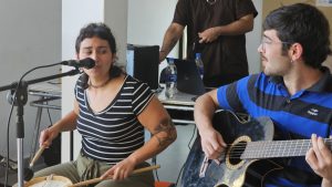 El arte también tuvo un lugar destacado. A lo largo del evento, quienes asistieron pudieron disfrutar de un taller de origami donde se elaboraron grullas, stand de maquillaje artístico a cargo de Jessica de Los Santos. Además, la expresión musical encontró su espacio en el micrófono abierto, donde participaron estudiantes y docentes de la UDC, junto a artistas invitados. Entre ellos, se destacaron las interpretaciones de Tomasa Cabrera “Tuti”, quien interpretó canciones latinoamericanas acompañada de dos músicos invitados. Desde el ámbito externo, brillaron Ary García y Guille Ñanco, ambos del Instituto De Educación Superior Artística de Esquel, con un repertorio intimista de rock nacional, Gastón Reyes, conocido artísticamente como “Gasti”, vecino del barrio Badén donde funciona la Extensión Áulica Esquel, con su presentación de trap, y Facunda Miranda Justo, quien interpretó con su guitarra electroacústica un repertorio de canciones del rock nacional, latinoamericano y reversiones de canciones del género urbano.