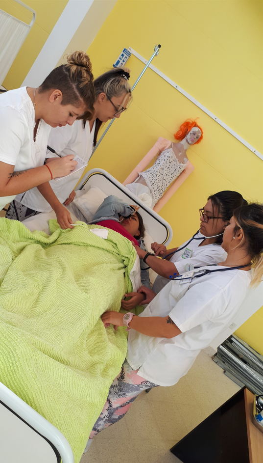 Estudiantes de enfermería pertenecientes a la Extensión Áulica Puerto Madryn, llevan adelante sus prácticas en el espacio de Simulación Clínica, de la cátedra de Enfermería Básica II, a cargo del Lic. Diego Valdivia, la Lic. Débora Peña y la Lic. Yanina Valdez.