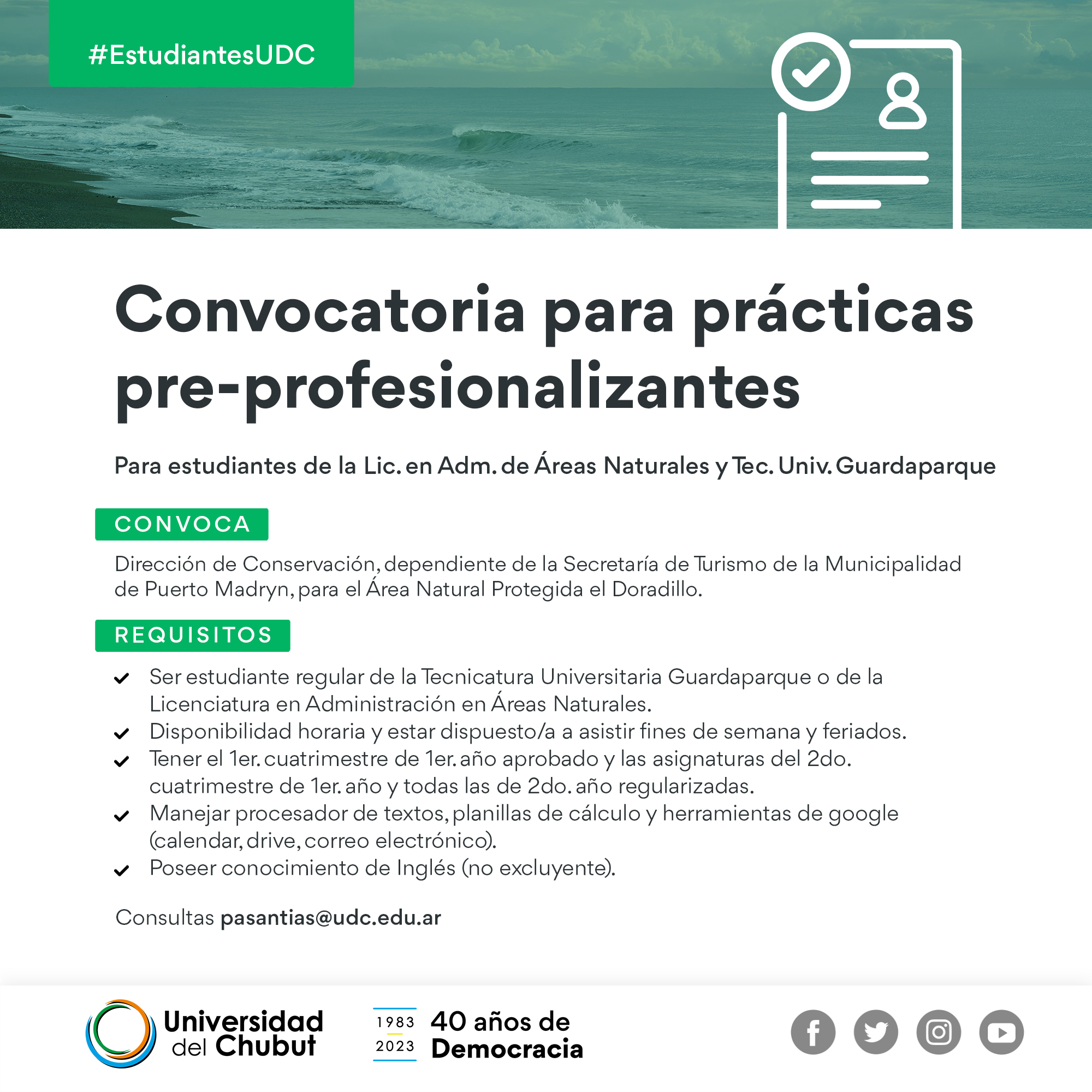Ser estudiante regular de la Tecnicatura Universitaria Guardaparque o Licenciatura en Administración en Áreas Naturales;
