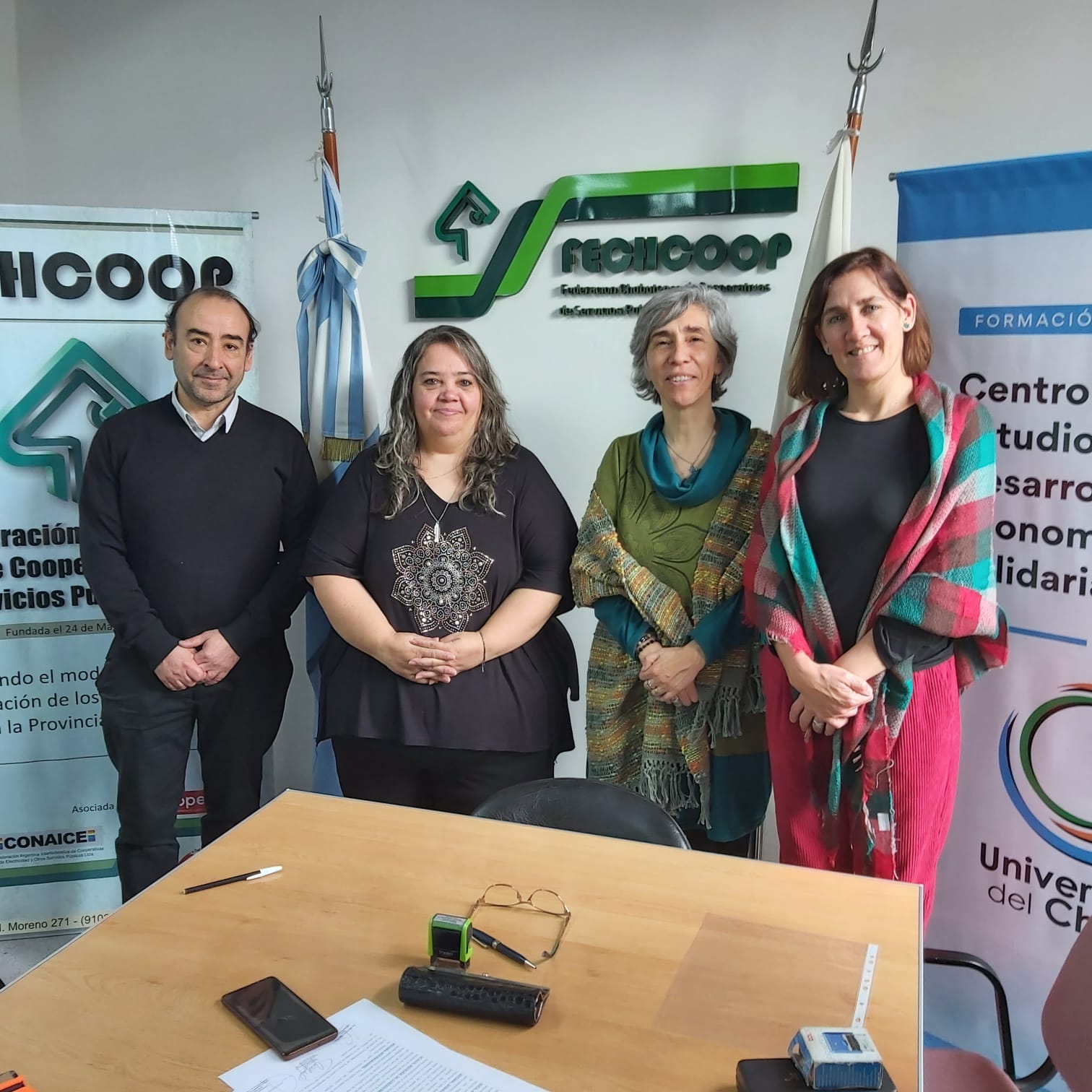 En el encuentro también participaron Federico Kexel, gerente de FECHCOOP y Marina Veleda, Coordinadora del CEDESS UDC y se pusieron en agenda diversas líneas de trabajo conjunto que serán motivo de la próxima firma de un convenio específico.