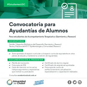 Convocamos para Ayudantías en Acompañamiento Terapéutico (Sarmiento y Rawson) 3 marzo, 2023 No hay comentarios _________________________________Seguir leyendo »