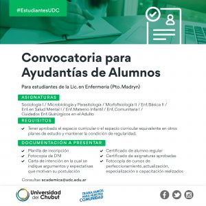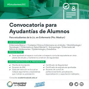 Se buscan estudiantes para Ayudantías en Enfermería (Pto. Madryn) 3 marzo, 2023 No hay comentarios _________________________________Seguir leyendo »