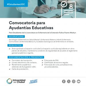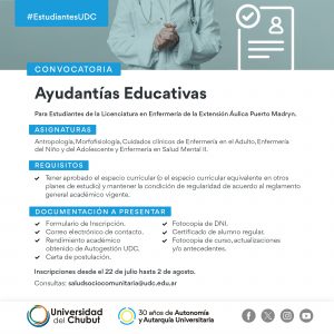 Se buscan estudiantes para Ayudantías en Enfermería 18 agosto, 2023 No hay comentarios _________________________________Seguir leyendo »