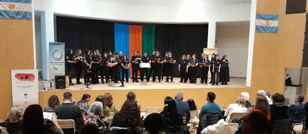 El pasado sábado 9 de noviembre, el Auditorio de la Universidad del Chubut (UDC) en Esquel fue sede de la primera jornada coral organizada por la Asociación Directores de Coro de la República Argentina (ADICORA) filial Chubut. El evento reunió a músicos y coros de la región, y fue una excelente oportunidad para la capacitación y el intercambio musical en la ciudad.